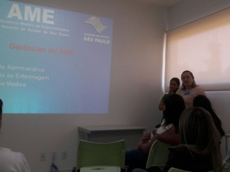 No dia 13, foi a vez dos Médicos e Enfermeiros da Estratégia de Saúde da Família, que participaram de um treinamento com a Dra. Marcela D.A. de Figueredo, Médica responsável pelo AME – Ambulatório Médico de Especialidades, objetivando a melhoria da triagem nas solicitações de guias de especialidades junto ao AME.