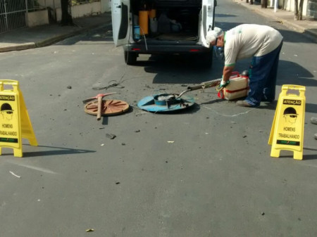 O serviço está sendo realizado por uma empresa terceirizada e supervisionada pelo Departamento de Combate a Endemias, e tem como previsão a dedetização de todos os bueiros do município.