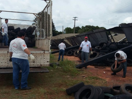 Departamento Municipal de Combate a Endemias recolhe pneus de barracão atingido por temporal