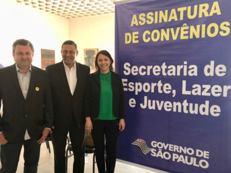 No último dia 21 de dezembro, quinta-feira, o Prefeito Lairto Piovesana, acompanhado da Vereadora Catiane Garcia Betarelo, estiveram na sede da Secretaria Estadual de Esportes do Estado de São Paulo para assinatura de um Convênio por meio do qual será entregue ao Município de Itajobi um Kit Esportivo contendo Troféus, Medalhas, Uniformes e Bolas além de uma Nova Academia ao Ar Livre Completa.