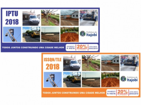 Devido à Greve dos Correios, a Prefeitura de Itajobi comunicou, nesta semana, que o pagamento do IPTU – Imposto Predial e Territorial Urbano –, do TLE e ISSQN fixos que estava previsto para ser cobrado a partir do próximo dia 20 de março será prorrogado para o dia 20 de abril. A prorrogação vale tanto para o pagamento em parcela única com desconto, quanto para o pagamento parcelado, que neste caso, terá todas as parcelas prorrogadas com início no próximo mês.
