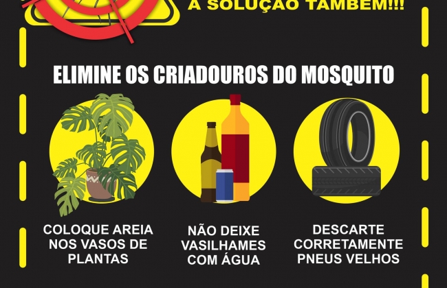 - Mantenha o quintal sempre limpo, jogando fora o que não é utilizado, elimine recipientes que possam acumular água, como tampinha de garrafa, folhas, sacolas plásticas etc.;