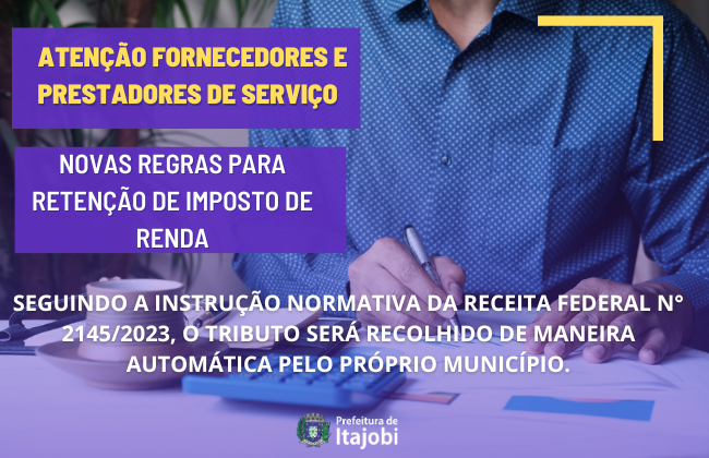 Prefeitura de Itajobi cumpre a instrução normativa da Receita Federal para Retenção de Imposto de Renda em Pagamentos a Fornecedores e Prestadores de Serviço.