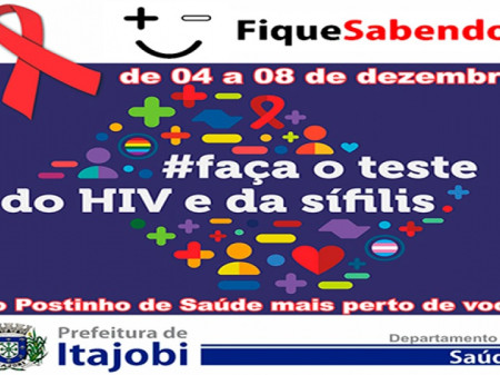 Entre os dias 4 e 8 de Dezembro, o Departamento de Saúde realizará ações da Campanha #FiqueSabendo, de prevenção do HIV e da Sífilis.