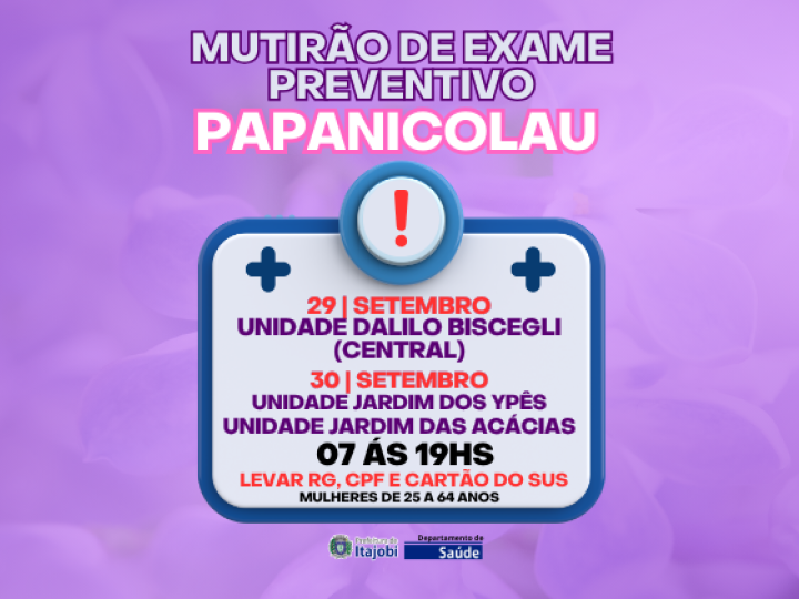 📢 MUTIRÃO DE EXAME PREVENTIVO – PAPANICOLAU 💗