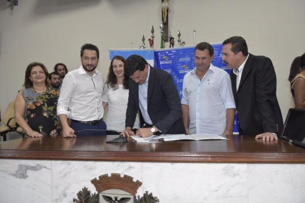 A solenidade para assinatura do convênio foi realizada na Câmara Municipal de São José do Rio Preto onde também esteve presente a Diretora do Departamento de Assistência Social, Camila Calera.