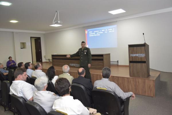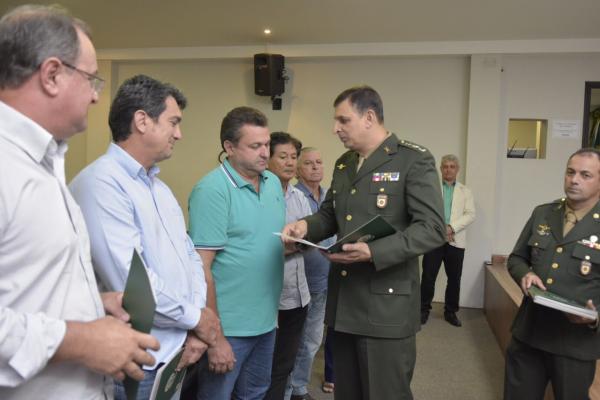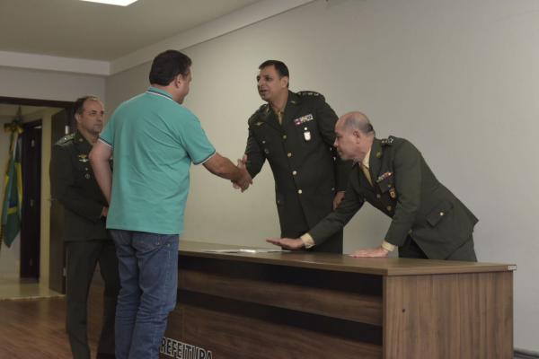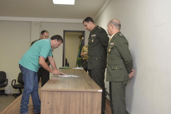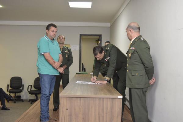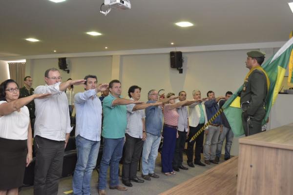 Durante a posse, o prefeito fez o juramento diante da Bandeira Nacional para cumprir os deveres relativos ao Serviço Militar no município e na sequência recebeu o diploma de presidente da Junta de Serviço Militar.
