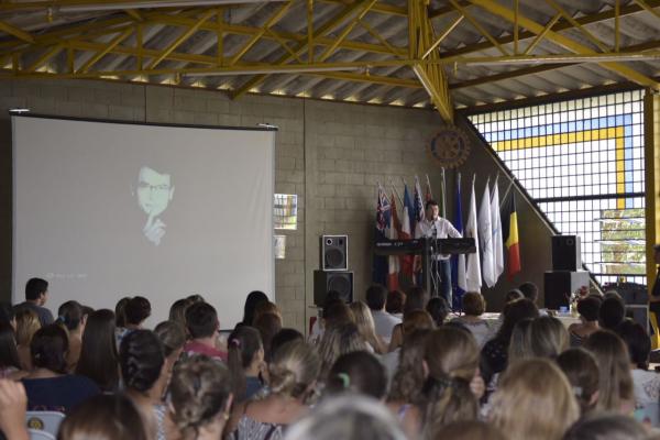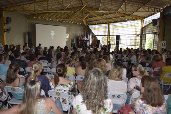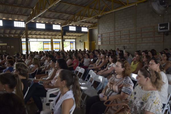 Como parte das ações de formação continuada dos profissionais da educação do município, o evento contou com a participação do palestrante Plínio Oliveira que por meio de mensagens de incentivo, motivação e canções de sua própria autoria, proporcionou uma rica troca de experiências e profunda reflexão sobre o tema “Sensibilidade na Educação”, que visa levar aos professores e funcionários o desenvolvimento da inteligência emocional baseada na ‘Cultura de Paz’ para que possam conviver com alunos e colegas de trabalho num clima de fraternidade, amor e respeito.
