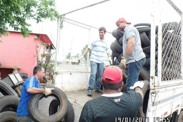 Na semana entre os dias 13 e 17 de março foi realizado um trabalho de coleta de pneus usados em todas as borracharias do município, pneus estes que se descartados de forma incorreta podem acumular água e facilitar a proliferação do mosquito Aedes Aegypti, dando um direcionamento adequado ao descarte desse material.