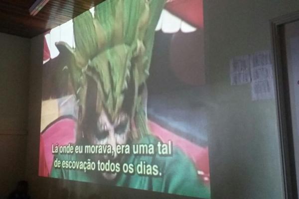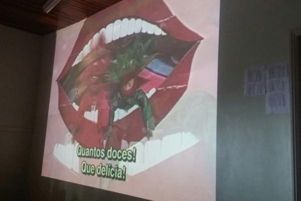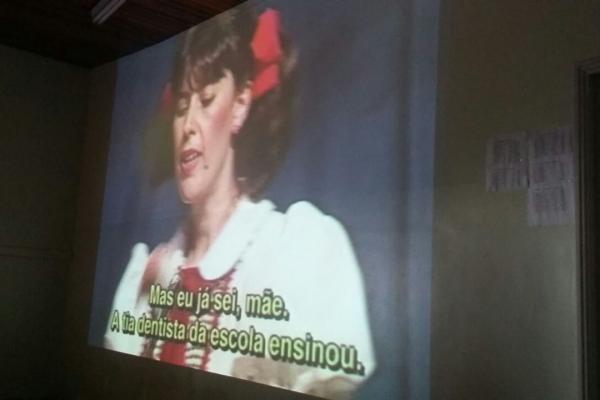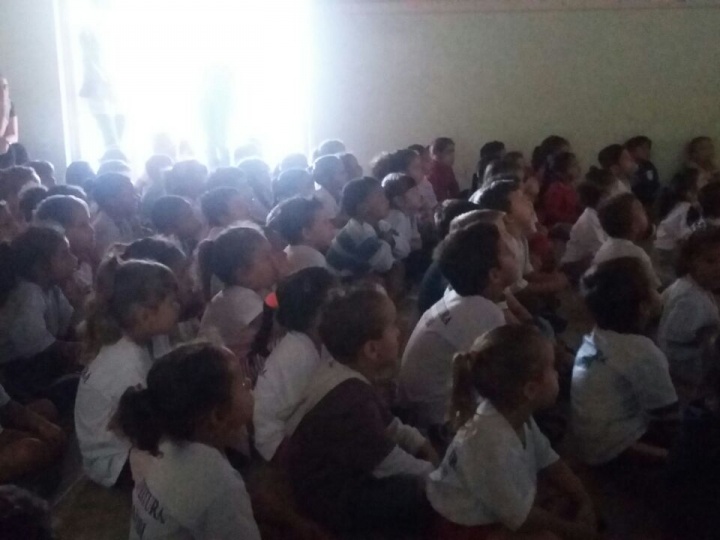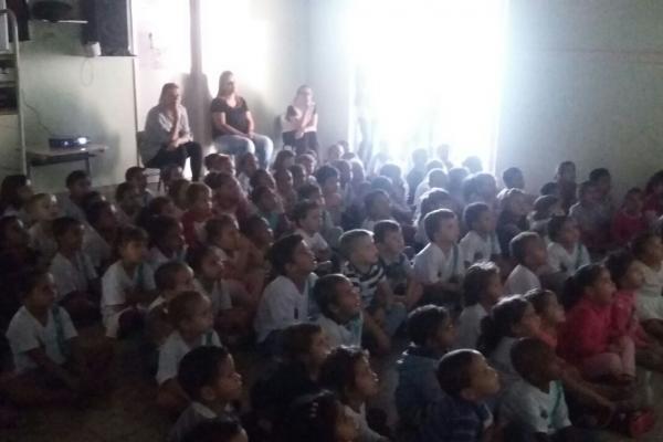 Uma das atividades do projeto é a atividade educativa em saúde bucal, com apresentação do vídeo "Menina Mariana" e um trabalho de escovação dental supervisionada.