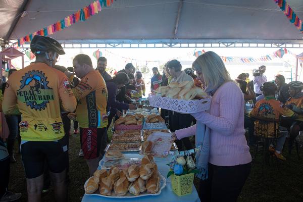 Uma outra novidade na edição de 2017 foi a realização do Café da Manhã Solidário, uma parceria entre o Fundo Social de Solidariedade e Grupo de Ciclistas Pedal Roubada de Itajobi, que aconteceu no domingo pela manhã na barraca do Fundo Social.