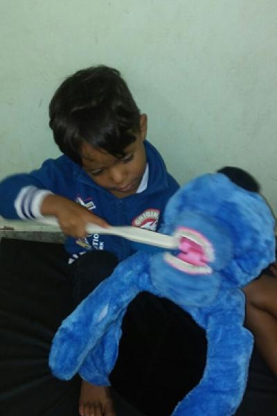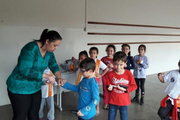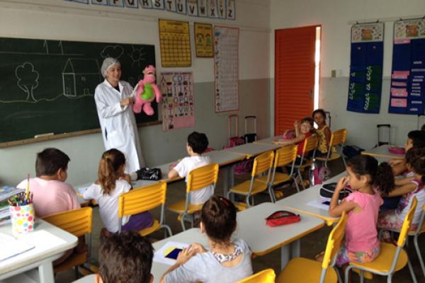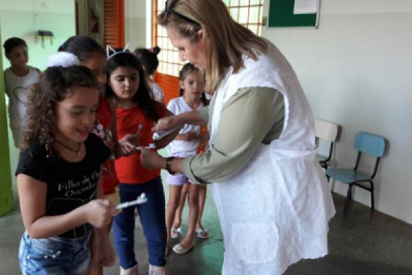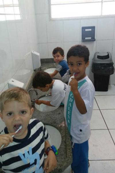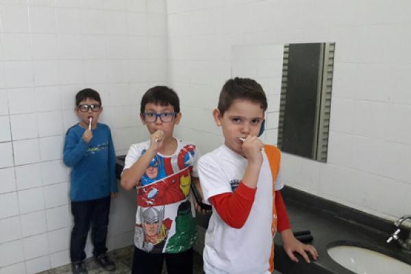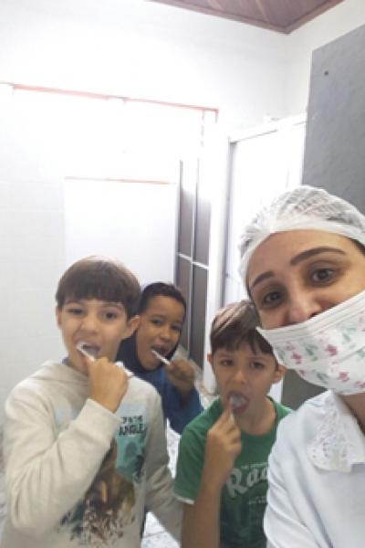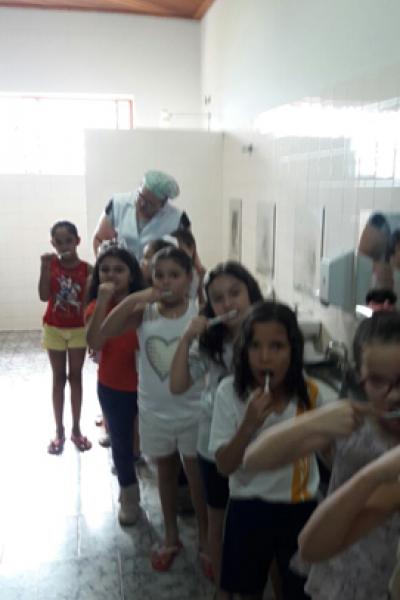 Para conscientizar as crianças e adolescentes sobre a importância do cuidado com os dentes, são realizadas semanalmente, atividades práticas de escovação, monitoradas pelas equipes de saúde bucal, onde realizam palestras orientando técnicas de escovação e hábitos alimentares, utilizando macro modelos, fantoches, filminhos, teatros, etc...
