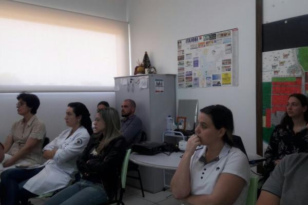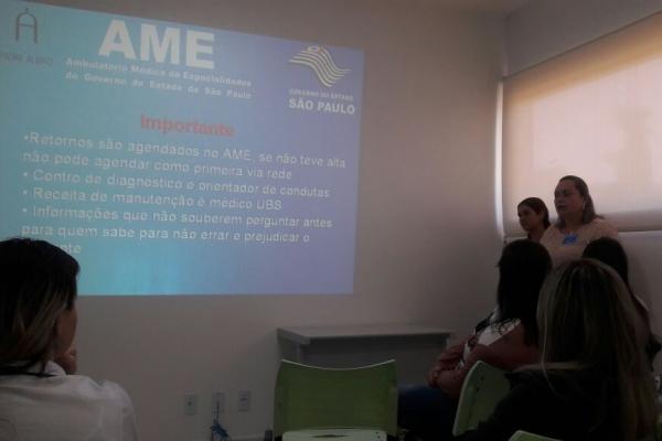 No dia 13, foi a vez dos Médicos e Enfermeiros da Estratégia de Saúde da Família, que participaram de um treinamento com a Dra. Marcela D.A. de Figueredo, Médica responsável pelo AME – Ambulatório Médico de Especialidades, objetivando a melhoria da triagem nas solicitações de guias de especialidades junto ao AME.
