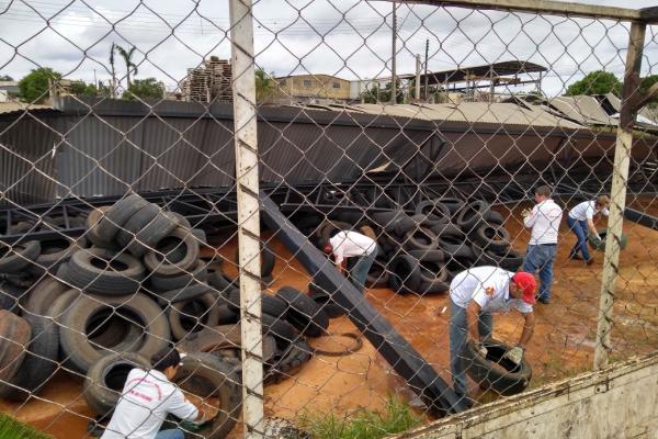 O barracão servia como ponto de armazenamento de pneus descartados por lojas, oficinas e borracharias da cidade até que fossem encaminhados à empresa de reciclagem, retirando-os do tempo e evitando o acumulo de água e a consequente proliferação do mosquito Aedes Aegypti e outros vetores de doenças.