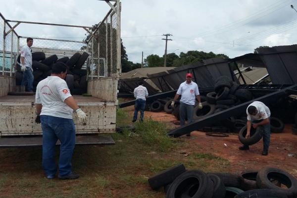 Departamento Municipal de Combate a Endemias recolhe pneus de barracão atingido por temporal