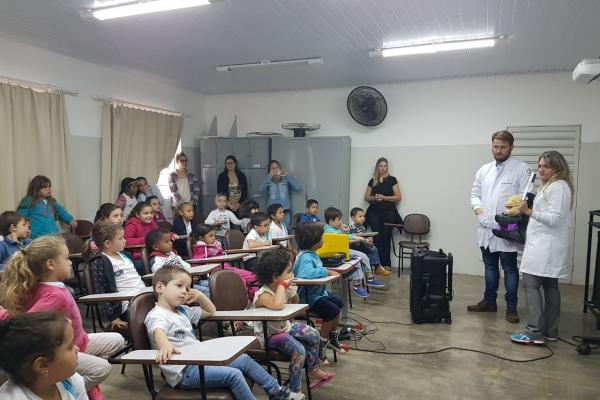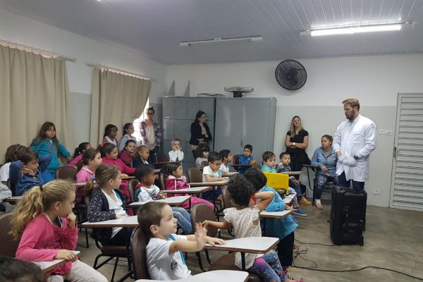 Durante o mês de novembro, como parte do PSE (Programa da Saúde na Escola), os alunos do Ensino Fundamental, creches e pré-escolas da Rede Municipal de Ensino, receberam a visita da equipe de saúde bucal do Departamento Municipal de Saúde.