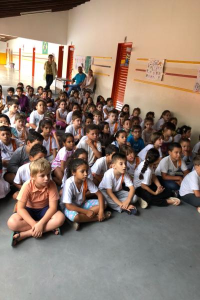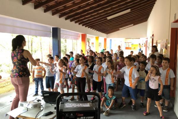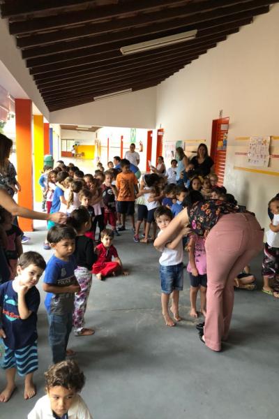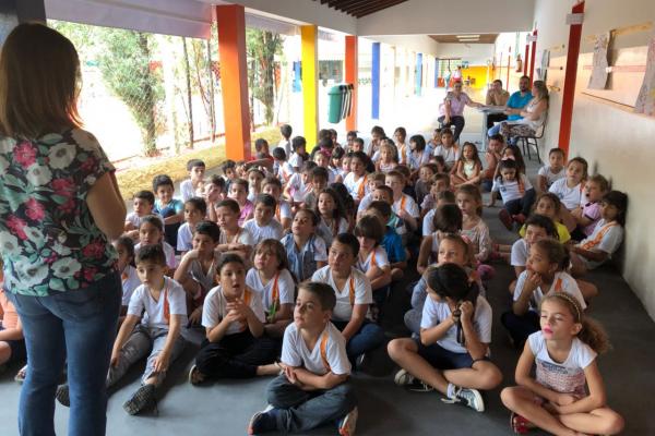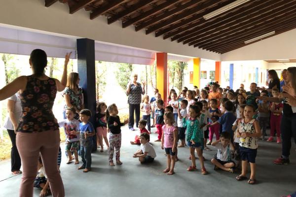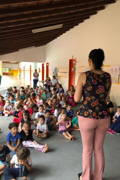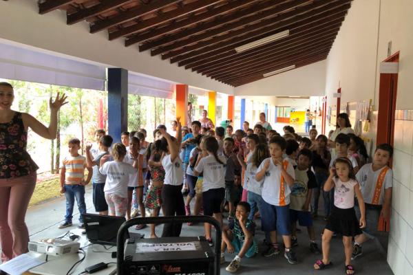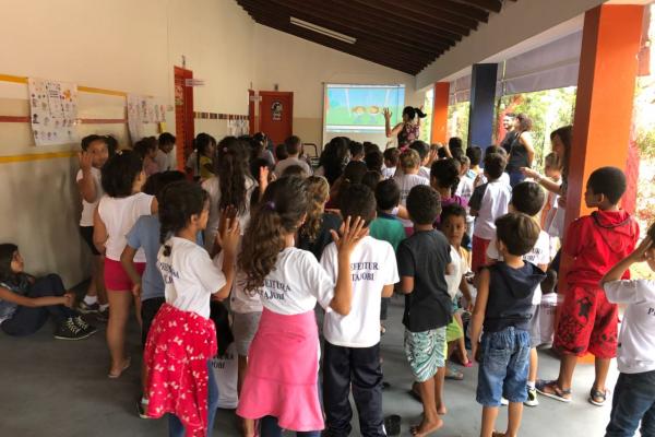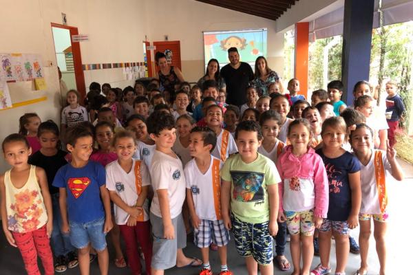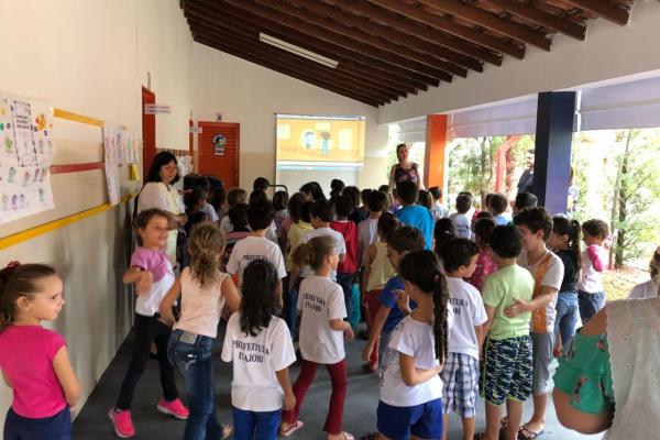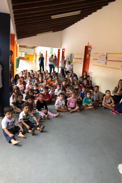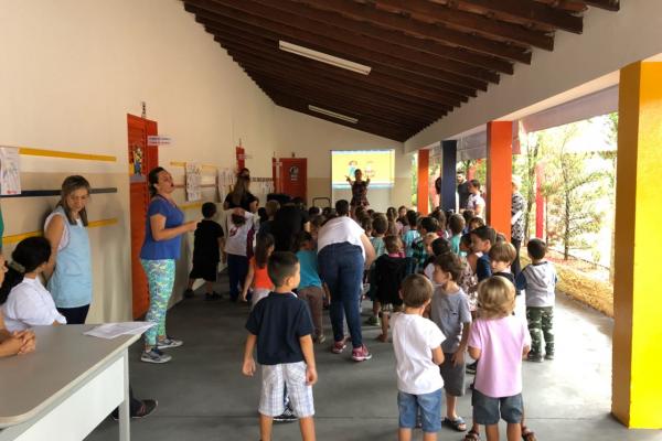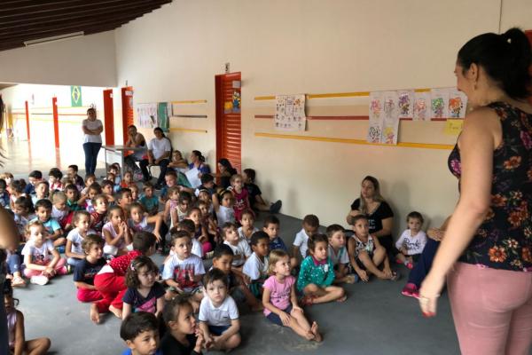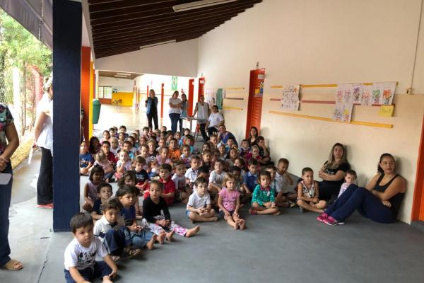 De forma lúdica e divertida, os profissionais de saúde levaram aos alunos das Escolas Municipais reflexão sobre a cultura de paz e o combate ao bullying no ambiente escolar.