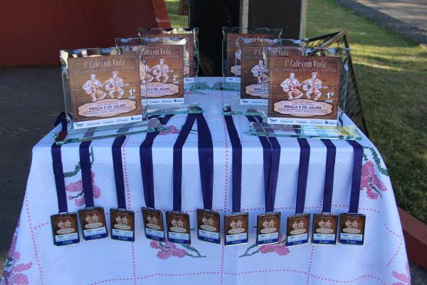 Após a apresentação foram premiadas com troféus as duplas que conquistaram os 1ºs, 2ºs e 3ºs lugares nas competições de baralho e com medalhas de participação todos os competidores e violeiros.