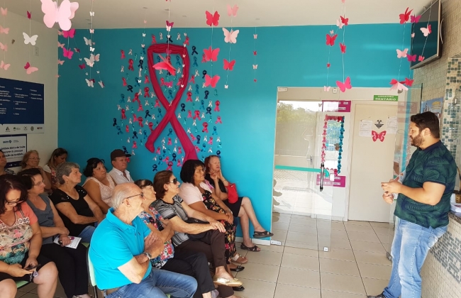 Estão sendo realizadas atividades de conscientização sobreo câncer de mama e de colo de útero, com palestras e orientações enfatizando a importância da prevenção primária, detecção precoce e da mamografia. Além disso, também é realizada coleta do exame Papanicolau.
