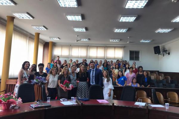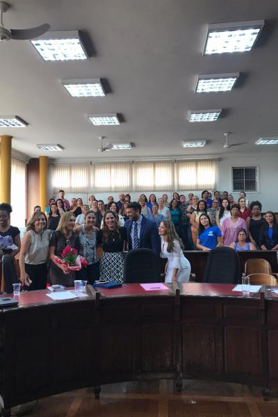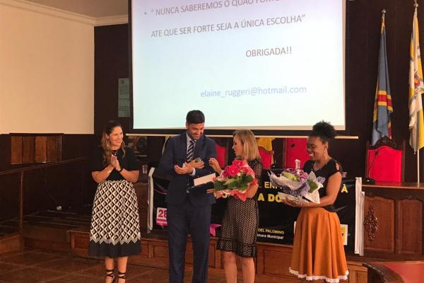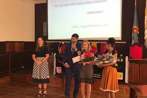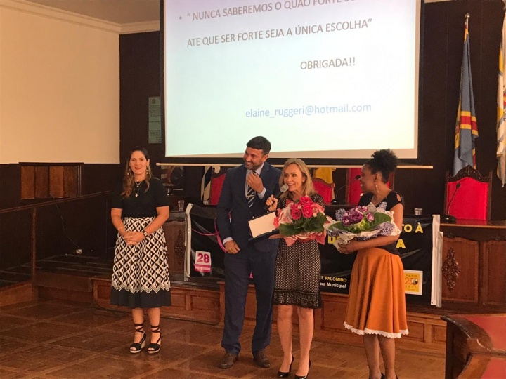 Por meio de um convite da Câmara Municipal de Mogi Mirim e da Promotora de Justiça Dra. Fabíola Sucasas, que leva esse programa para todo o Estado de São Paulo, as Diretoras da Saúde (Elaine Ruggeri) e Assistência Social (Eliana Ruggeri Tomé) foram até Mogi Mirim na quinta-feira (28) e participaram do 1º Seminário de Enfrentamento à Violência Doméstica daquele município.