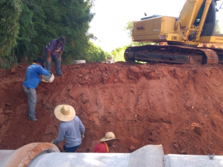 A Prefeitura de Itajobi está construindo uma nova tubulação em um trecho da estrada rural da Vila Assaí, próxima à fazenda Santo Antônio.
