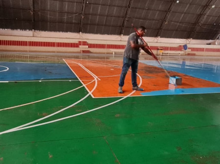 Obras de Pintura da Quadra e demais serviços estão sendo realizados, como calçamento do lado externo da quadra, reforma da arquibancada, pintura do piso da quadra, troca das redes de proteção, entre outros. O investimento total da obra é de R$ 32.856,33 com recursos próprios do município.