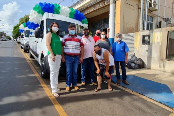 A entrega das vans contou com a presença do prefeito Sidiomar Ujaque (Paquinho) e da vice-prefeita Catiane.