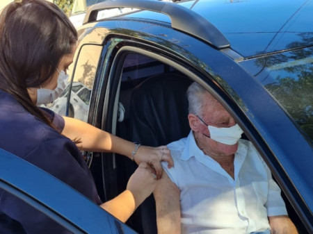 A equipe de vacinação está na Praça da Matriz de segunda a sexta-feira, das 8h às 17h. A vacina está sendo aplicada em sistema drive thru (sistema de passagem, podendo ser a pé ou dentro de veículo), para facilitar o acesso e evitar aglomerações. Os idosos devem apresentar o cartão SUS e R.G.