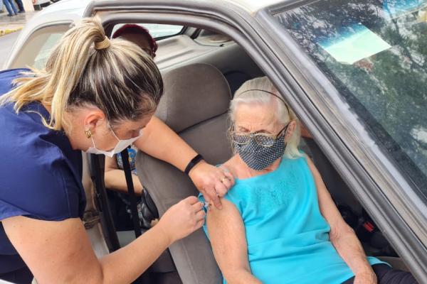A aplicação para os idosos de 85 a 89 anos está sendo realizada em frente a Praça da Matriz, em sistema de drive thru (sistema de passagem, podendo ser a pé ou dentro do veículo), para facilitar o acesso e evitar aglomerações. É obrigatória a apresentação do cartão SUS e R.G.