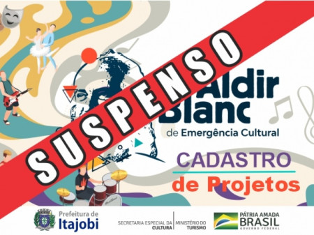 Por meio da publicação de um Comunicado no Diário Oficial, a Prefeitura de Itajobi suspendeu por prazo indeterminado, na tarde desta quarta-feira, 08, o Edital de Chamamento nº 01/2021 de 07 de dezembro que tratava sobre a abertura de inscrições para seleção de projetos de artistas e trabalhadores da área da cultura da cidade a serem beneficiados com recursos emergenciais da Lei Aldir Blanc.