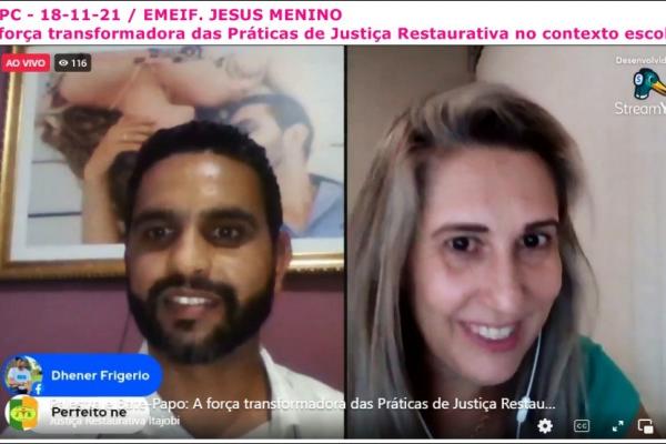 Em Itajobi, com apoio da Diretoria da Educação e Cultura ,foi realizado no dia 18/11/2021, uma sensibilização e Bate Papo on line, com o Tema: “A força transformadora das Práticas da Justiça Restaurativa no contexto Escolar”.