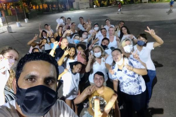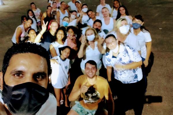 Conduzida pelo professo e facilitador Alessandro Neves, esta aula de Dança Mix da Paz, contou com os participantes vestindo camisetas brancas, um momento reflexivo com bexigas brancas. Uma breve fala sobre o trabalho que se desenvolve no Núcleo da Justiça Restaurativa, e está a disposição ao Público em geral para o atendimento, ressaltando a importância de acreditarmos e buscar a paz resolvendo nossas diferenças e conflitos de maneira dialogada.