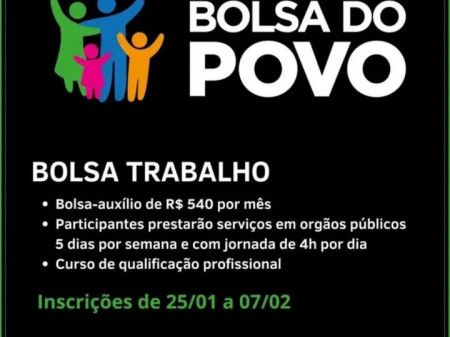 A Prefeitura de Itajobi abriu mais 40 vagas para Frente de Trabalho por meio do Programa Bolsa do Povo. As inscrições já estão abertas e podem ser feitas pelo site: www.bolsadopovo.sp.gov.br ou comparecer ao PAT, localizado ao prédio do Ganha Tempo na Rua Pedro de Toledo, 1431.