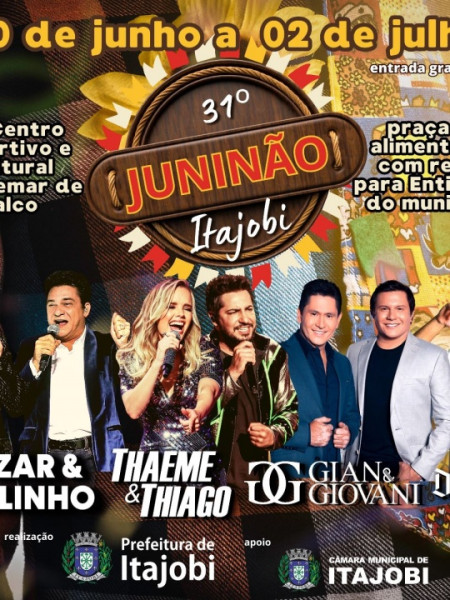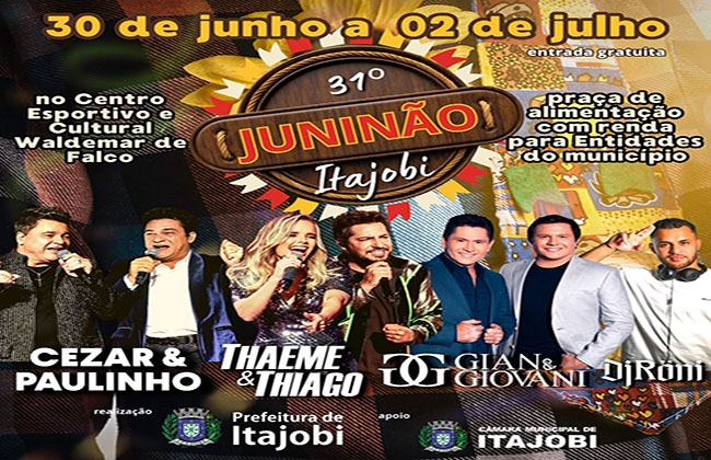 O 31º Juninão de Itajobi será realizado nos dias 30 de Junho, 1º e 2 de Julho, no Centro Esportivo e Cultural Waldemar de Falco.