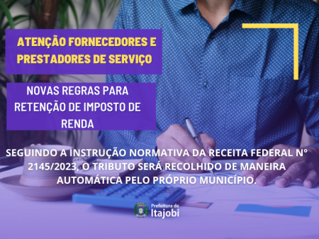 Prefeitura de Itajobi cumpre a instrução normativa da Receita Federal para Retenção de Imposto de Renda em Pagamentos a Fornecedores e Prestadores de Serviço.