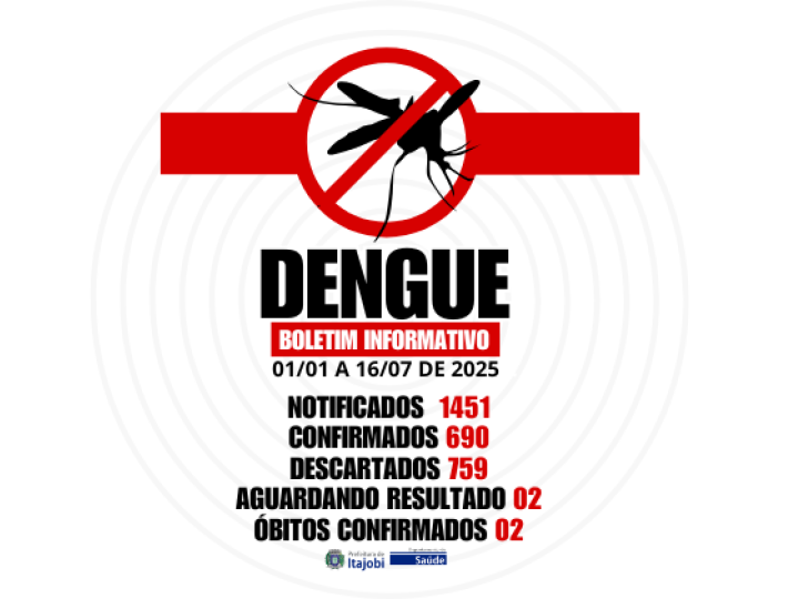 A Prefeitura Municipal de Itajobi, por meio do Departamento Municipal de Saúde, atualiza a população com os números da Dengue no período de 01/01 a 16/07/2025: