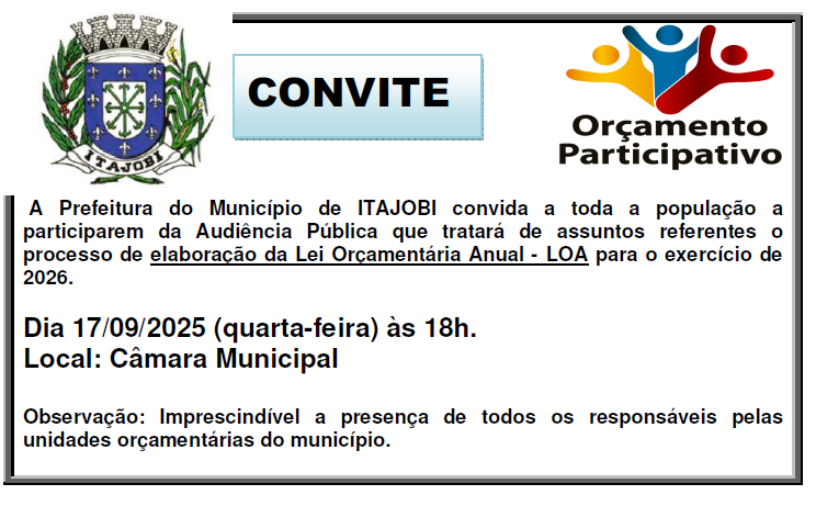 Assessoria de Comunicação: comunicacao@itajobi.sp.gov.br - (17) 3546-9019